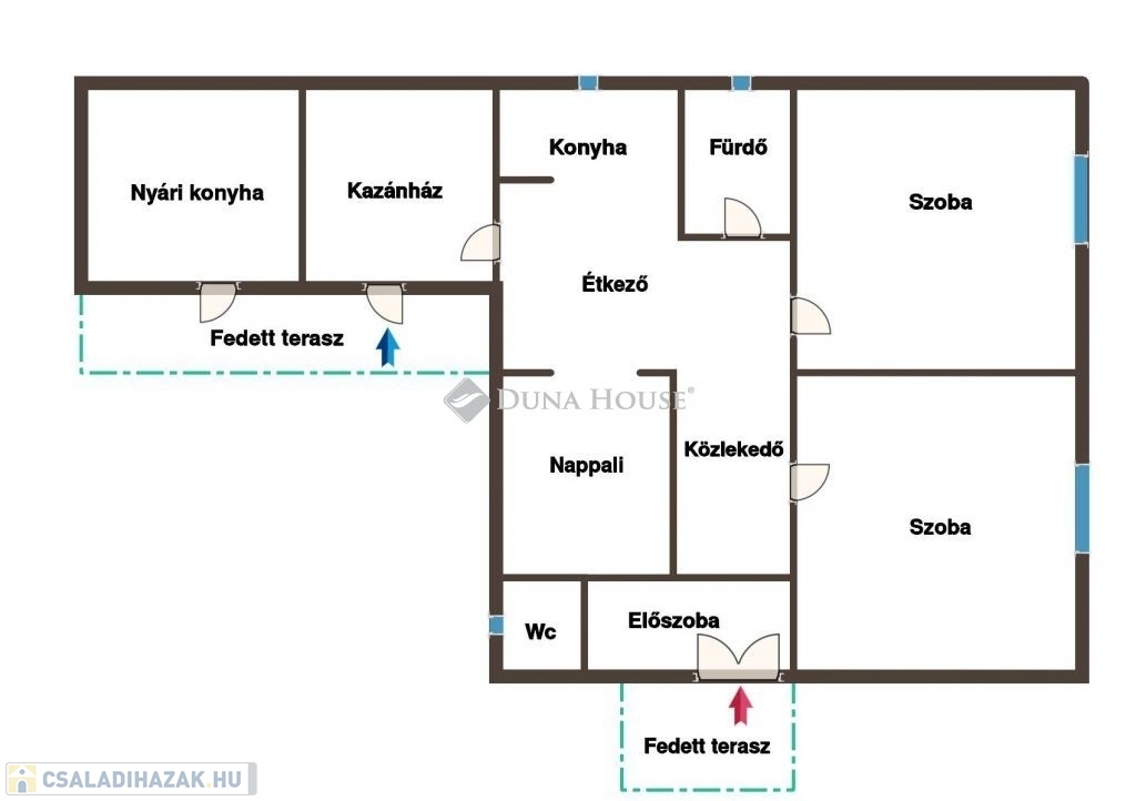A nyári konyhát - egy ajtó beépítésével a válaszfalba - könnyedén a lakótérbe lehet vonni és egy szobával többet tudunk kihozni az ingatlanból.
