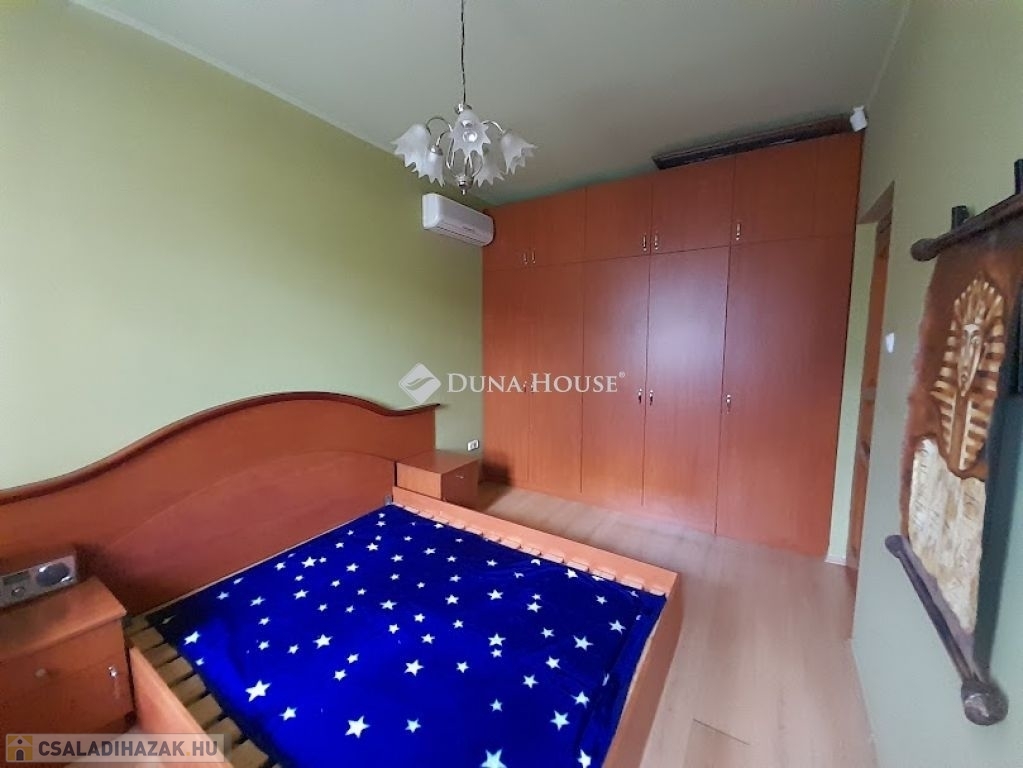 A tégla szerkezetű szigetelt családi ház 2004-ben épült egy összközműves 1265 nm-es telken. A gondos tervezésnek köszönhetően mindkét lakrész a mai kor elvárásainak megfelelő kialakítást kapott. Az ingatlan rendszeresen karbantartott, belső terei 2018-ban, a külső homlokzati falak és faszerkezetek 2023-ban újultak meg. A családi ház fűtéséről gázkazán gondoskodik, padlófűtéses és radiátoros hőleadással valamint egy épített csempekályha nyújt hangulatos meleget a téli estéken. Az ingatlan hűtését több korszerű hűtő-fűtő klímaberendezés garantálja, melyek működéséhez az áramellátást a 9 KW-os napelemrendszer bőven biztosítja. A családi ház biztonságáról riasztórendszer gondoskodik.