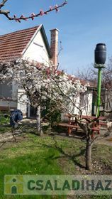 ELADÓ Békéscsabán, az Almáskertekben egy zártkerti besorolású cca. 70 m2-es 2 szobás központi fűtésű, átlagos állapotú, tetőteres vasbeton födémes tégla szerkezetű épület pincével, garázzsal és művehető kerttel