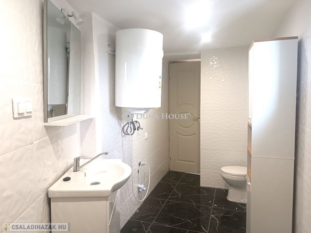 Felújított, különleges adottságú lakás Békéscsabán saját kerttel, garázzsal, pincével.Békéscsaba központjához közel kínálunk megvételre egy egyedi hangulatú, első emeleti, 70 m²-es, teljes körűen felújított társasházi lakást. Az ingatlanhoz saját leválasztott udvar, tágas pince és utcáról megközelíthető garázs is tartozik.A Szarvasi úti Lidl közelében található, mindössze 4 lakásos társasház egyik ékköve vált eladóvá. Az épület téglából épült, és 2023-ban átfogó korszerűsítésen esett át: megújult a tető, új elektromos hálózat került kialakításra 32 A teljesítménnyel, cserélték a víz- és szennyvízvezetékeket, valamint modern műanyag nyílászárók kerültek beépítésre. A homlokzat 10 cm-es hőszigetelést és nemesvakolatot kapott. A fűtés jelenleg gázkonvektoros, de már megvásárolták a hűtő-fűtő klímát is, amely csak felszerelésre vár.A lakás belső tere teljesen megújult: magasfényű burkolatok, a hálóban laminált padló, vadonatúj fürdőszoba, modern LED világítás, gipszkarton álmennyezet és letisztult stílus jellemzi. Minden friss, tiszta, azonnal költözhető.Két bejárattal rendelkezik: az egyik közvetlenül az utcáról, a másik a belső udvar felől érhető el. A garázs szintén az utcáról nyílik, azon keresztül közelíthető meg a privát kert. A kert felől lépcső vezet fel a lakáshoz, ahol egy kb. 12 m²-es terasz fogad. Innen nyílik az amerikai konyhás nappali, amely közvetlen kapcsolatban áll a terasszal és gyönyörű kilátást ad a teljesen elkülönített kertre.A lakás a garázs és egy kb. 40 m²-es, száraz, boltíves pince felett helyezkedik el. A pince sokféle célra alkalmas: tárolásra, műhelynek, de akár üzleti funkcióra is.Ideális választás azoknak, akik nem szeretnének felújítással bajlódni itt még festeni sem kell, minden új. Tökéletes egyedülállóknak vagy pároknak, de kisebb család is kényelmesen elfér benne.Forgalmas elhelyezkedése miatt kiváló lehetőség vállalkozás számára is: a pince akár üzlettérré alakítható, a lakás pedig a saját otthonává válhat munka és magánélet egy helyen.Ne hagyja ki ezt a sokoldalú, különleges ingatlant jöjjön el, nézze meg, és valósítsa meg benne elképzeléseit!