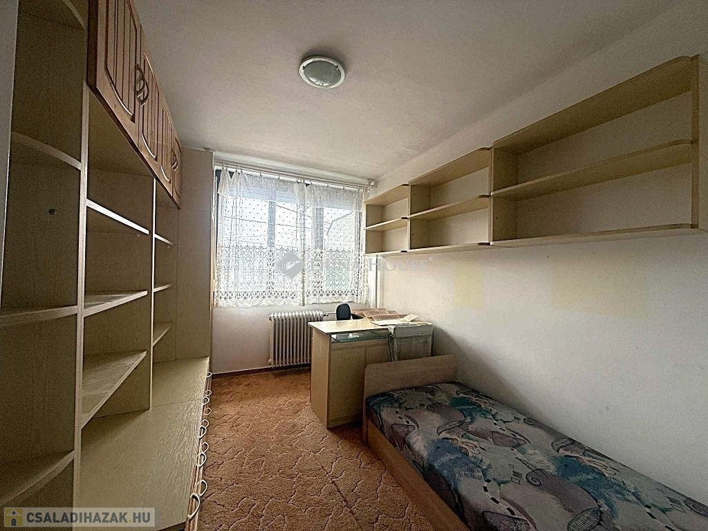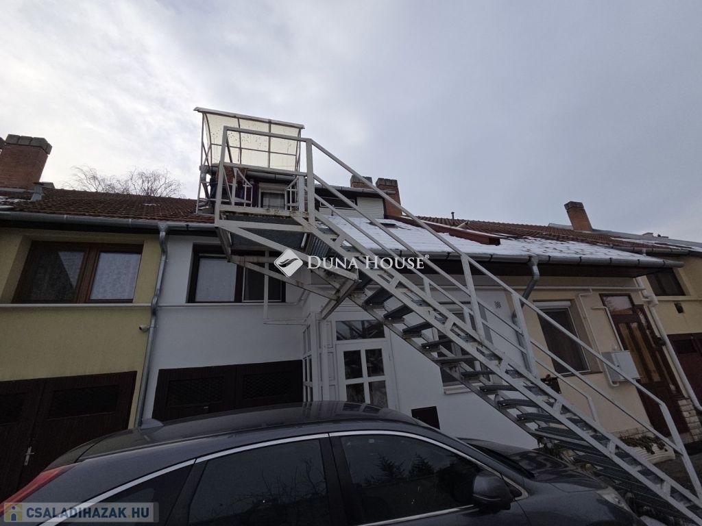 Eladó sorházi lakás Békéscsabán!Békéscsaba kertvárosi részén eladó egy téglából épült sorházi lakás, amely 1985-ben épült, tetejét cseréppel fedték be.Az ingatlan eredeti alapterülete 89 m², azonban a tetőtér utólagosan beépítésre került, így a lakótér összesen 120 m².Az ingatlan két szintes, valamint a beépített tetőtér plusz egy szintet képez.Alsó és felső szint kialakítása: nappali 3 hálószoba konyha kamra közlekedő háztartási helyiség 2 fürdőszobaTetőtér: Külön bejárattal rendelkezik melyet egy külső lépcsőn keresztül lehet megközelíteni.Kialakítása : nappali konyha hálószoba fürdőszoba WC-vel közlekedőA fűtésről gázkazán gondoskodik, radiátoros hőleadással.Az ablakok részben cserélve lettek.( alsó szinten )Az alsó szinten fa parketta burkolat míg a vizes helyiségekben kőburkolat, az emeleten padlószőnyeg található.Az ingatlan összközműves: vezetékes víz, villany, csatorna és gáz is be van vezetve.Jogilag rendezett, rövid határidővel birtokba vehető.Az ingatlan előtt fedett autóbeállási lehetőség található, amely az ingatlan saját tulajdonát képezi.A környék ellátottsága kiváló: 1,5 km-en belül iskola, óvoda és bevásárlási lehetőségek egyaránt megtalálhatók.A környezet csendes, nyugodt, ideális családok számára.Amennyiben hirdetésem felkeltette érdeklődését, várom megtisztelő hívását.