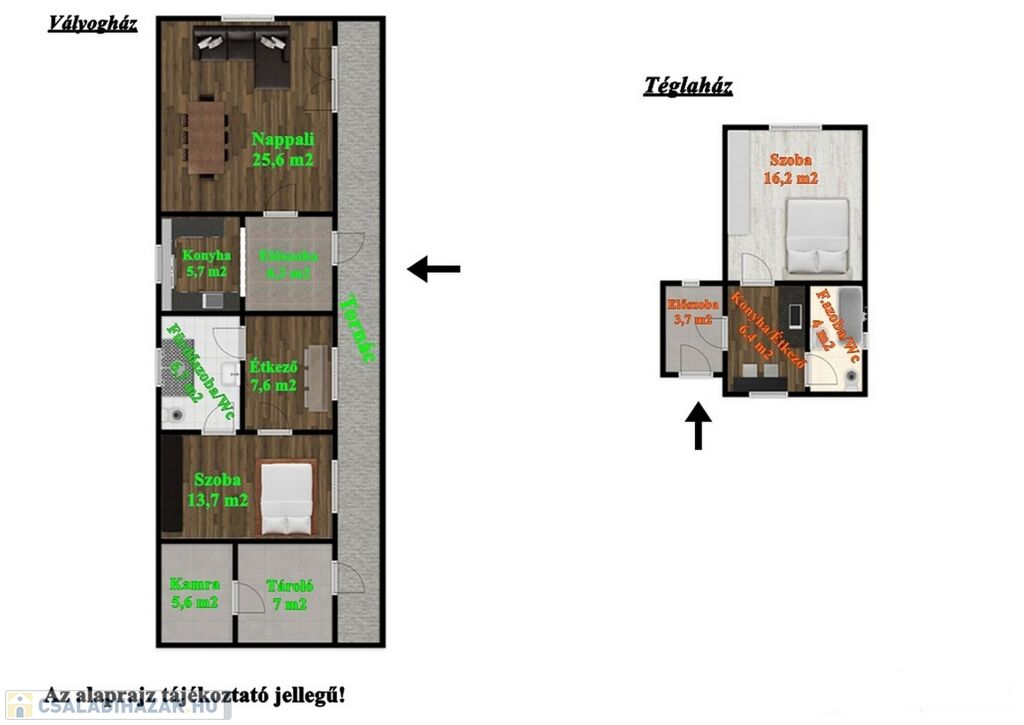 A két különálló lakóépületnek köszönhetően az ingatlan rendkívül sokoldalúan hasznosítható: alkalmas lehet két generáció együttélésére, külön lakrész kialakítására, vendégházként vagy kiadásra, de akár vállalkozási célra is.