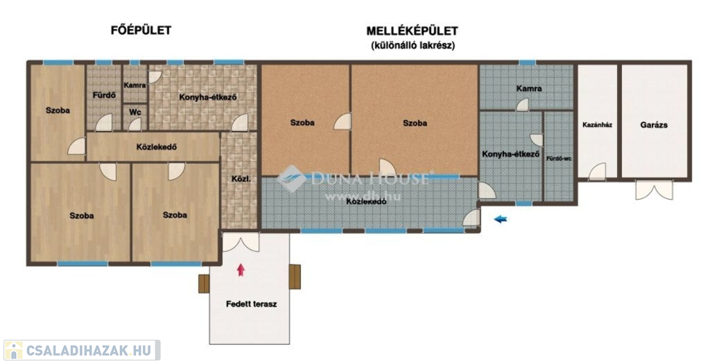 - MELLÉKÉPÜLET: A főépület mellett egy külön bejáratú, 80 nm-es lakrész is helyet kapott, amely tökéletes lehet vendégháznak, kétgenerációs otthonnak vagy akár hasznosításra is.