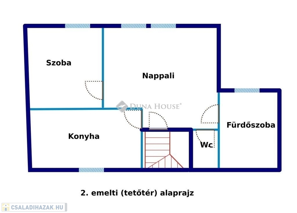 Mindhárom szinten megtalálható: konyha, nappali + háló, fürdő és WC.