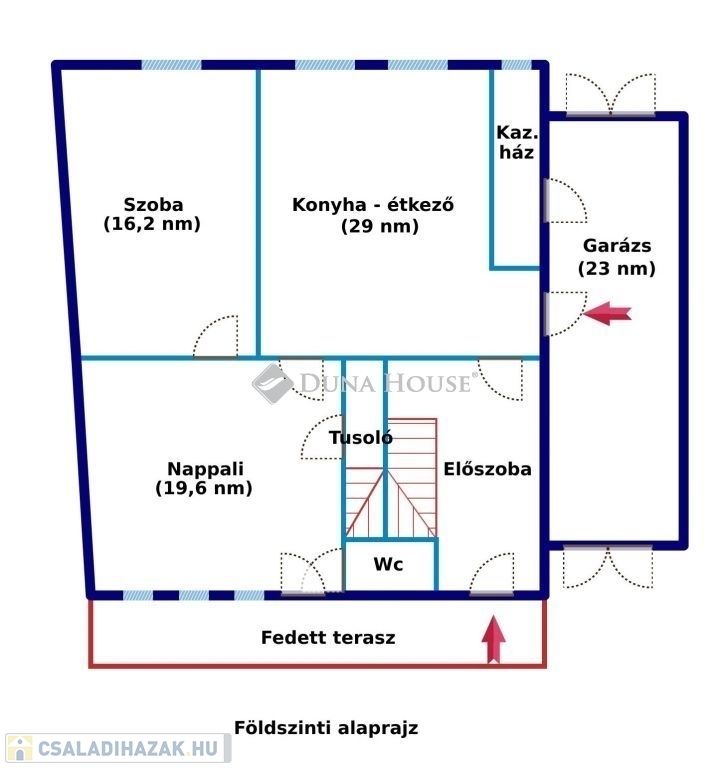 A házhoz egy tágas garázs is tartozik, amelyből közvetlenül megközelíthető az udvar.