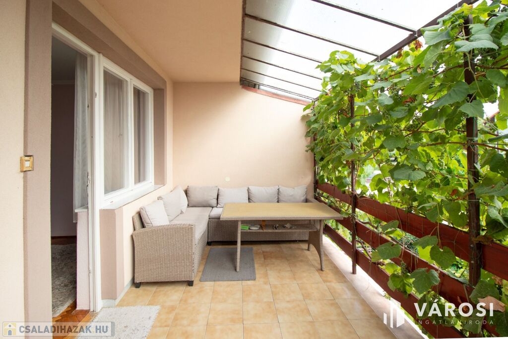 A házhoz tartozik egy hangulatos terasz és erkély, melyekről pazar kilátás nyílik a kertkapcsolatos udvarra, ahol kerti grillezőhely áll rendelkezésre a baráti összejövetelekhez. A szúnyoghálóval felszerelt nyílászárók biztosítják a kellemes pihenést a melegebb hónapokban is.