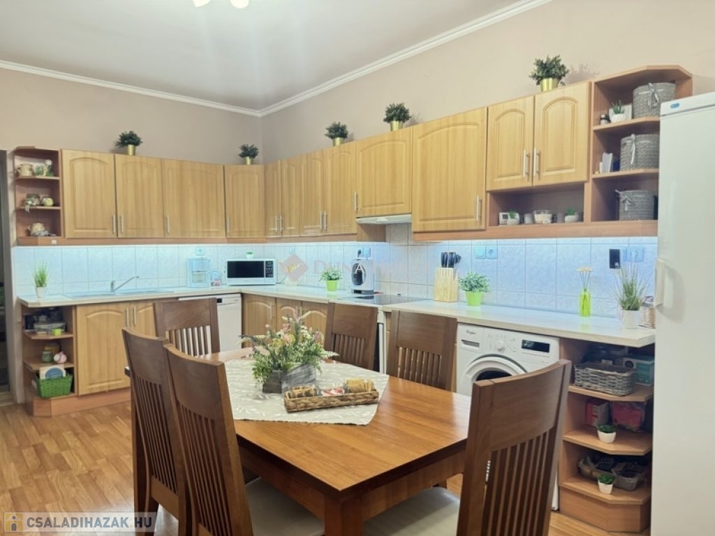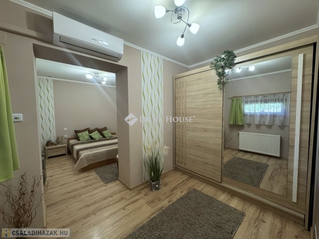 TELJESEN FELÚJÍTOTT, KIFOGÁSTALAN MINŐSÉGŰ CSALÁDI HÁZ ÁLOMSZÉP KIALAKÍTÁSSAL ÉS ALACSONY FENNTARTÁSI KÖLTSÉGGEL!Eladó egy tágas 133 m²-es, teljeskörűen felújított családi ház, amely minden kényelmi igényt kielégít!A három hálószoba, a hatalmas nappali és a kényelmes étkező-konyha tökéletes elrendezést biztosít családosoknak vagy tágas térre vágyó pároknak is egyaránt.Lakótér: 133 m² - kényelmes, nagy terek, praktikus elrendezés.Telek: 744 m² - pont ideális és élhető méret, könnyen gondozható, de minden elfér rajta amire szüksége van.Műszaki tartalom:- 6,5 kWp napelem rendszer az éves villanyszámlát lenullázza!- Kombi gázkazán lapradiátorokkal+vegyestüzelésű kazán többféle fűtési lehetőség.- 2 db hűtő-fűtő klíma hűvös otthon nyáron is.- 10 cm kőzetgyapot szigetelés, Baumit nemesvakolattal alacsony fűtési költségek.- Hőszigetelt fa nyílászárók igényes, esztétikus megjelenés.- Villany-; víz- és szennyvízvezetékek teljes cseréje.- Új tetőszerkezet, cserép és ereszcsatorna.Kiemelkedő jellemzők:- Hatalmas fedett terasz a baráti összejövetelekhez.- Füvesített játéktér gyerekeknek, árnyékot adó nagy lombos fával.- Kétállásos garázs és külön hátsó terasz ideális akár jakuzzi számára!- Térkövezett udvar már nem kell a burkolattal bajlódni!Amennyiben az Ön elvárása is egy valóban kész, igényes és hosszú távon gazdaságosan fenntartható családi otthon, kérem, keressen bizalommal további részletekért és a megtekintés egyeztetése céljából.