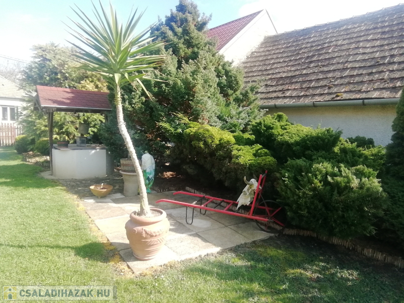 Ez a különleges családi ház minden igényt kielégít. A 70 négyzetméteres lakótér kényelmes elrendezést biztosít a család számára, ami szükség esetén akár bővíthető miközben a kert gyönyörű tujákkal és fenyőfákkal körül öleli az otthont.