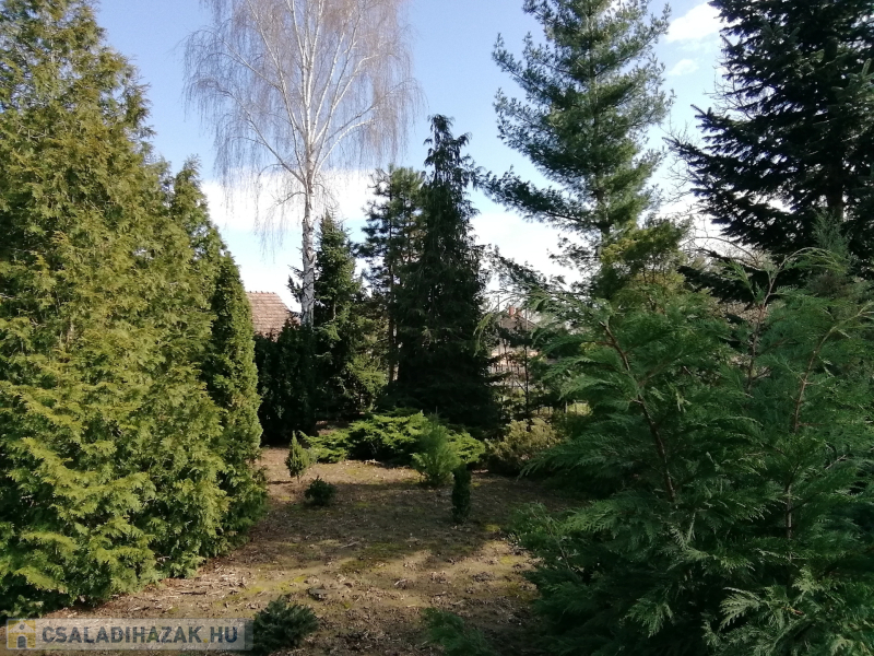 Extrák: Gyönyörű tuják és fenyőfák díszítik a kertet, ami különleges atmoszférát kölcsönöz az ingatlannak