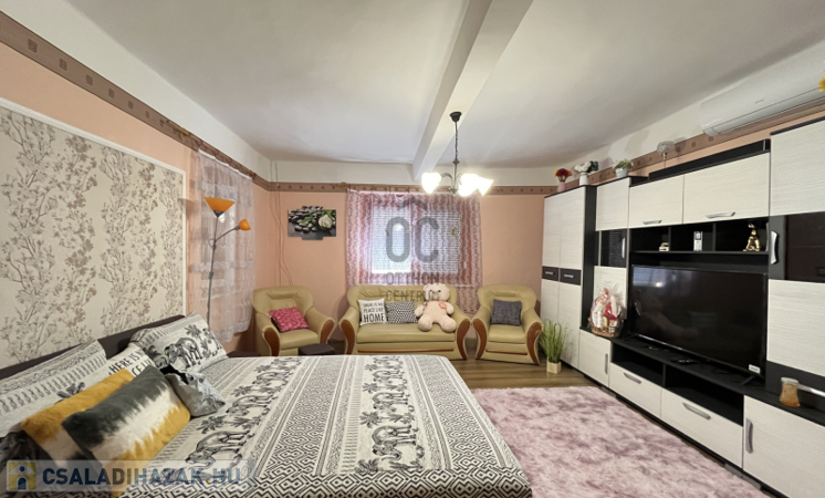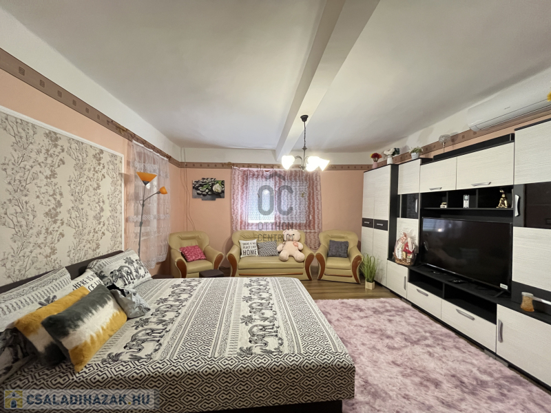 Nagyobb ház: 2 szoba + nappali, cserépkályhás fűtés, 3 hűtő-fűtő klíma, modern komfort!