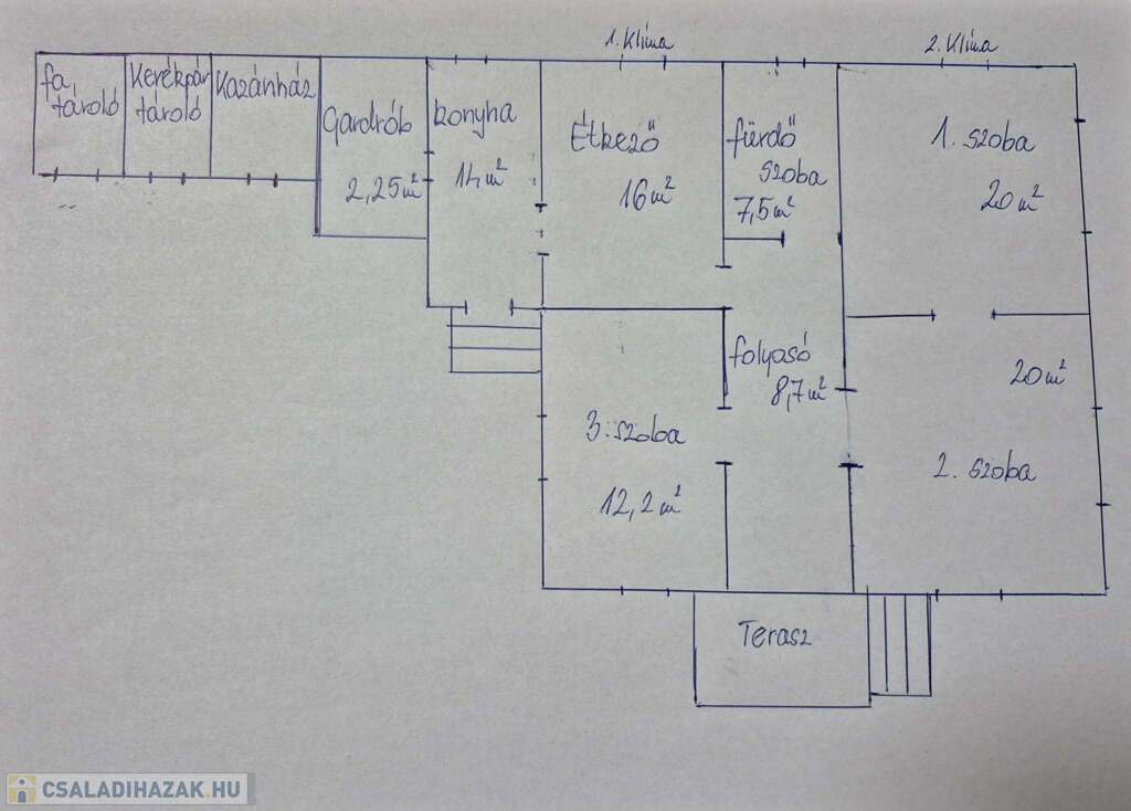 Helyiségek: konyha, étkező, fürdőszoba+wc, 3 szoba (amelyből az egyik nappaliként funkcionál), folyosó, gardrób,