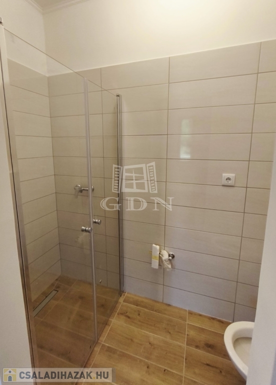 Elől is kapott helyet EGY HÁLÓSZOBA külön zuhanyzós fürdőszobával wc-vel. A komfort érzetet erősíti, hogy külön mellékhelyiség is elhelyezésre került az ingatlanban.