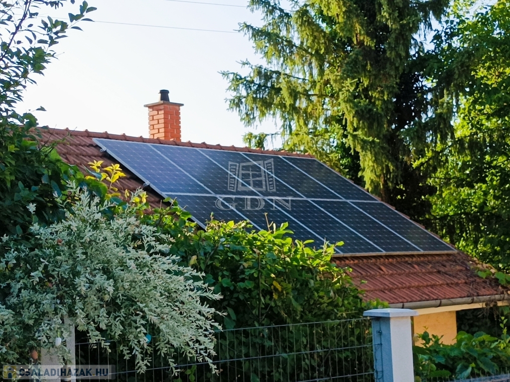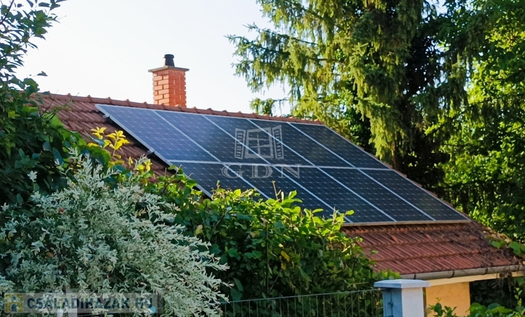 Déli tájolású, a fűtés gázcirkó. 10 db napelem biztosítja az alacsony rezsit a házban.
