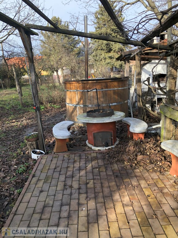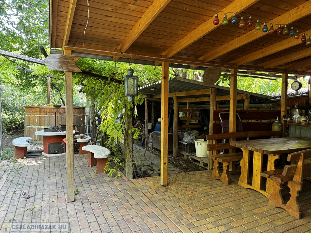 A kikapcsolódást épített terasz, kemence, grillsütő, dézsa biztosítja. Telek 2 270 m3. Kertészkedésre alkalmas.