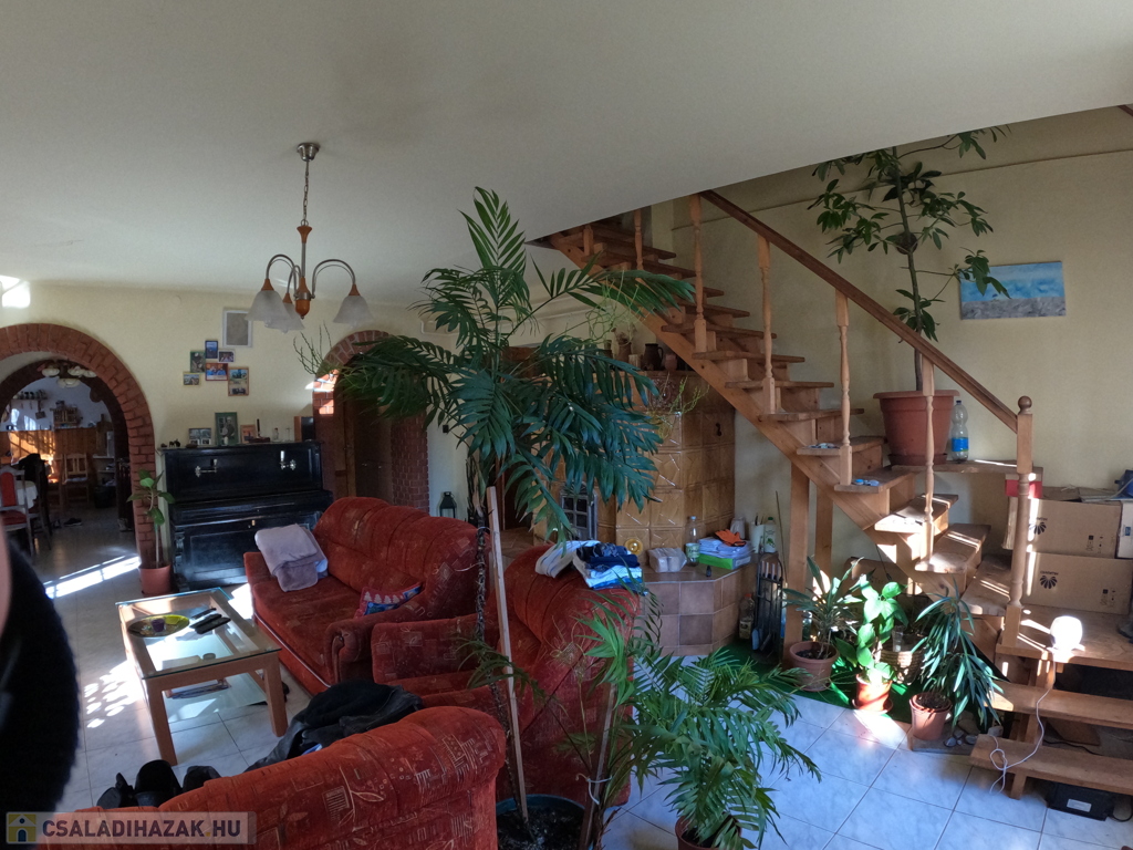 A ház 1990-ben poroton téglából épült, tetőfedése Bramac cserép, fa, duplaüveges Velux nyílászárókkal, padlófűtéssel (gáz), kandallóval, napelemes rendszerrel rendelkezik. Állapota korának megfelelő.