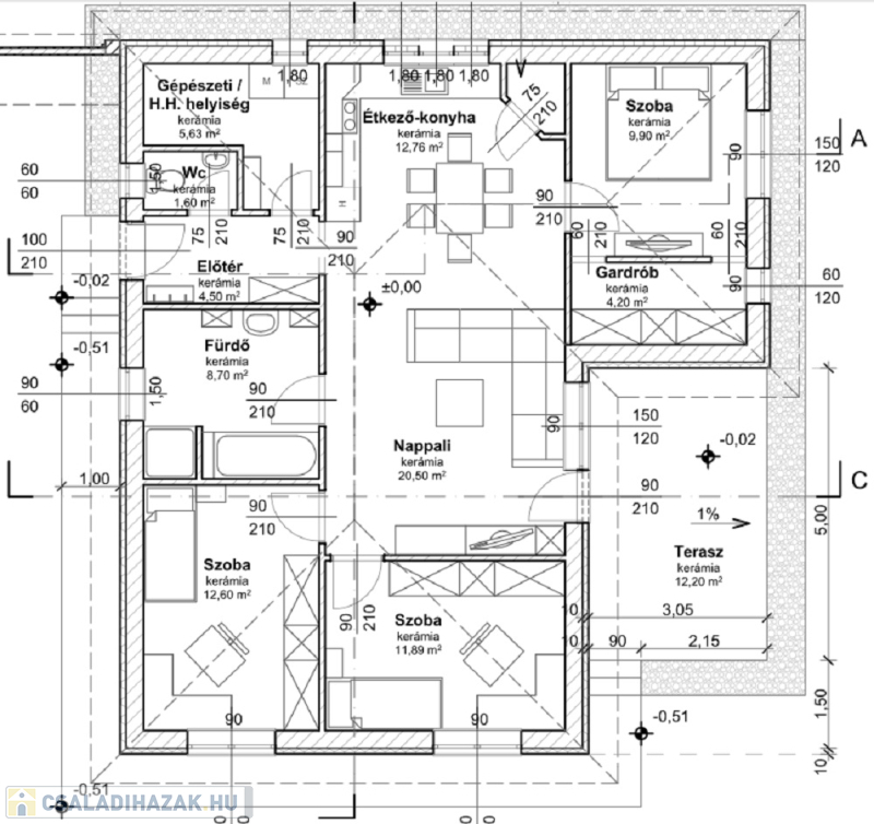 Minden helyiségben padlófűtés hőszivattyús rendszerrel