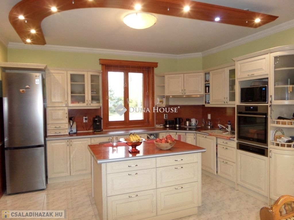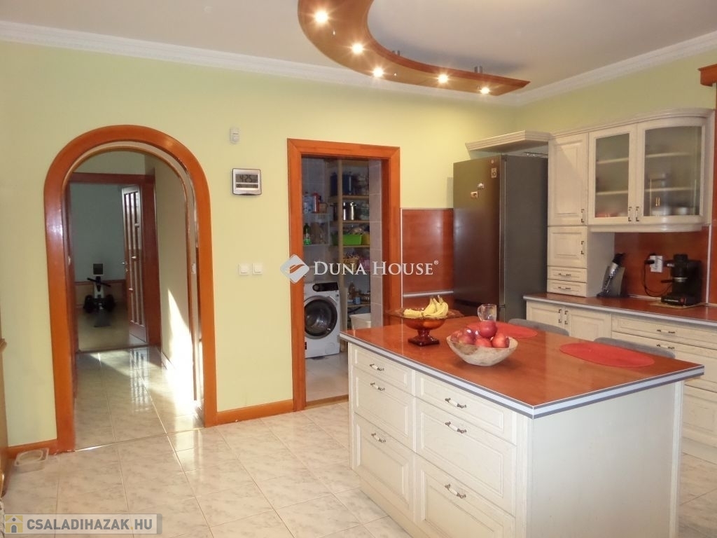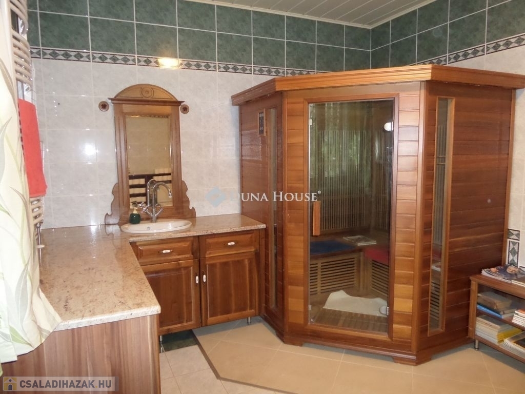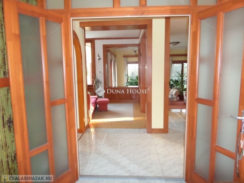 Baranya megyében, Pécstől 16 km re fekvő Birján településen eladó egy nem mindennapi élményt nyújtó arborétum-kert a benne található lakóházzal, melléképületekkel.A bírtok 15.000 m2-en terül el, a tulajdonos 30 éve folyamatosan telepíti a növényzetet, jelenleg kb 486 féle faj, köztük díszfák, örökzöldek, cserjék, évelő virágok és gyümölcsfák találhatók. A házat körbe vevő zöld növényzet különleges mikroklímát biztosít a háznak, így az épület nem igényel hűtést, a legforróbb időszakokban sem. A kertet bio módszerrel ápolják, nem használnak vegyszereket.A terület teljesen körbe van kerítve, a falu felől téglafallal, hátul kerítéssel és sövénnyel. A birtoknak 3 bejárat van, fő és mellék kapu melyek elektromosan nyílnak, valamint gazdasági bejárat. A területen térkövezett utak vezetnek a kaputól az épületekig.A ház 1992-94 között épült prémium minőségben, nettó területe 179m2. központi része a hatalmas konyha-étkező és a vele egybe nyíló, kis szinteltolással kialakított nappali és társalgó. Innen két oldalra nyílik a többi helyiség, a 3 hálószoba, két fürdő, és a nagy gardróbszoba. Az egyik fürdőszobában 3 személyes infraszauna került beépítésre. A nappalihoz kapcsolódik egy 48m2-es terasz is, ahonnan kiváló a kilátás a kertre. Az épület 10 cm homlokzati és 40 cm födém hőszigeteléssel rendelkezik, valamint fa nyílászárókkal dupla üvegezéssel van felszerelve.A ház mellett több melléképület is található, két fedett kocsi beálló, kettő garázs, kazánház, nagy tároló helyiségek.Az ingatlan egyedi és különleges gépészettel rendelkezik, benne a gépészmérnök tulajdonos által fejlesztett megoldásokkal. A fűtést több rendszerről is üzemeltetni lehet. Egyrészt van egy vegyes tüzelésű, egyedileg fejlesztett kazán, melyet a kert zöld hulladéka teljesen el tud látni tüzelővel. Ezen kívül gázcirkó kazán, hőszivattyú, a nappaliban épített cserépkályha, valamint hűtő-fűtő klímákkal is megoldható a fűtés, melyeket a 4,5 KW-os napelemek is el tudnak látni árammal. A ház rezsije minimális költséggel fenntartható.A kert gondozásához rendelkezésre áll egy ásott és egy 40 mély fúrt kút, valamint egy 50 nm-es ciszterna, melyből az öntöző rendszeren keresztül folyamatosan biztosított a növények vízellátása.A kert egyik sarkában kis kápolna kapott helyet egyedileg épített haranglábbal. A ház nagycsalád részére is és többféle vállalkozás céljára is kiváló lehetőség.További információkért, megtekintéssel kapcsolatban keressen bizalommal.