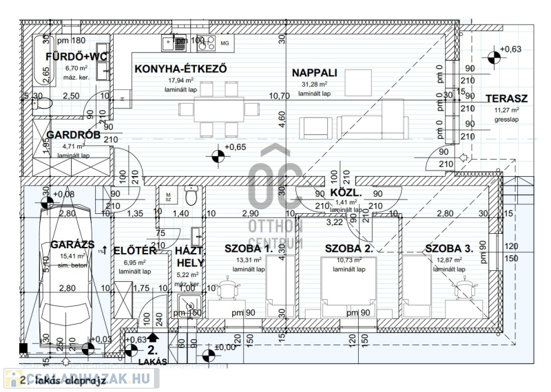 - amerikaikonyhás nappali (49 nm) teraszkapcsolattal