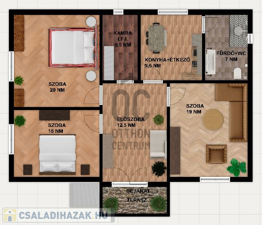 -90 m²-es alapterület, amely a tetőtérrel bővíthető