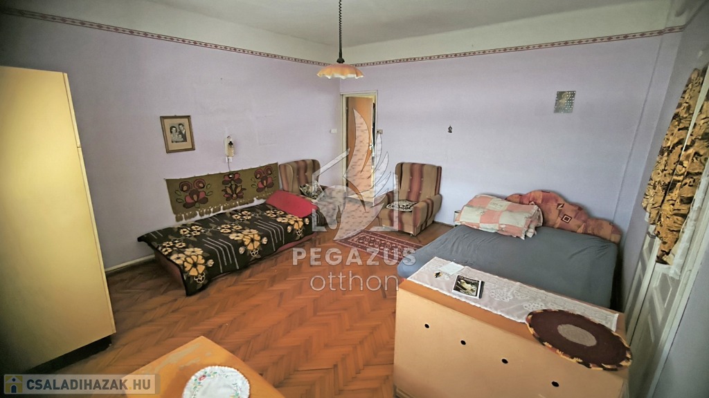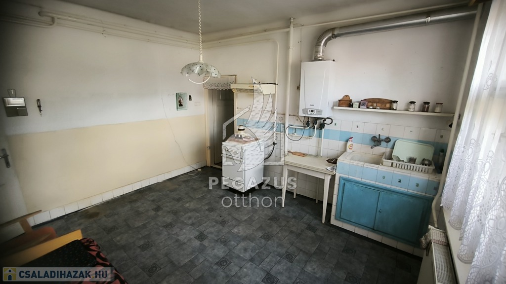A ház egy csendes utcában fekszik, és két garázs is tartozik hozzá, így a parkolás sosem probléma. Némi ráfordítással ez a családi ház egy modern és barátságos otthonná varázsolható.