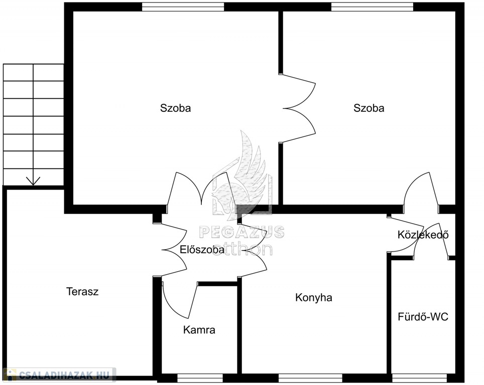A házban a nyílászárók régi típusú fából készültek. A szobák padlója parketta és PVC, míg a konyha, az előszobák és a fürdőszoba is praktikus burkolatot kapott. Az ingatlanban lévő bútorok igény szerint a vételár részét képezik, így akár azonnal költözhető.