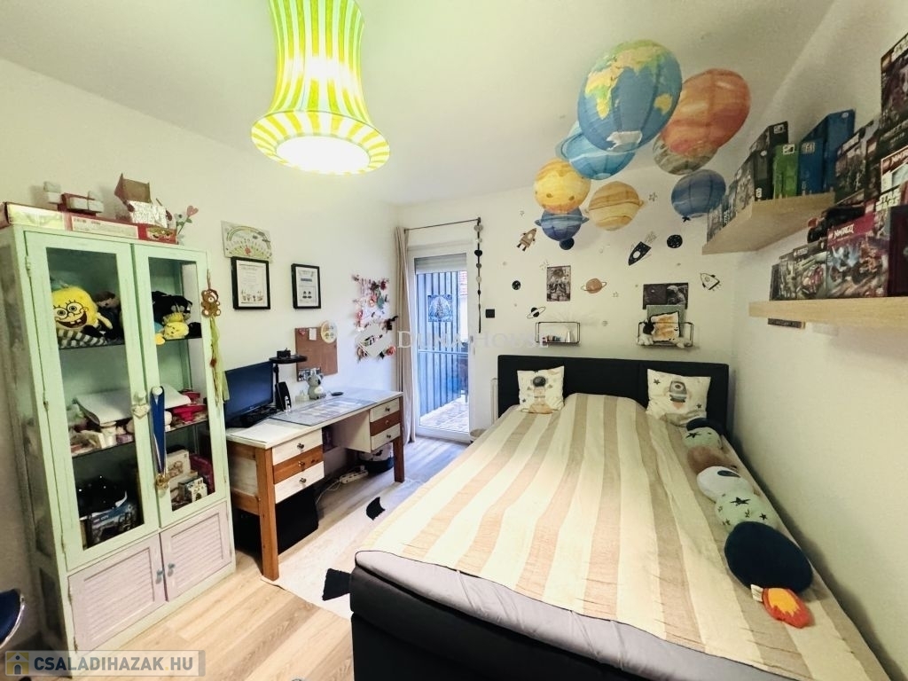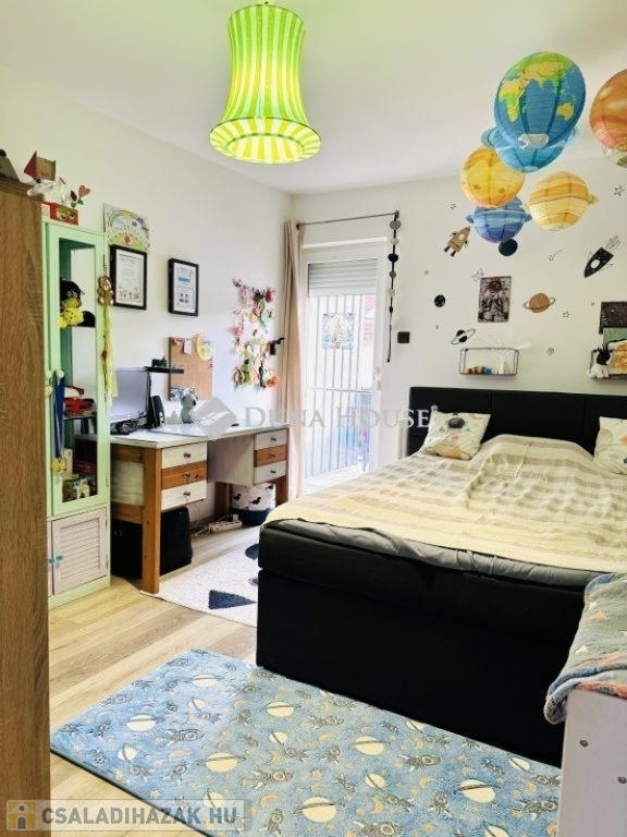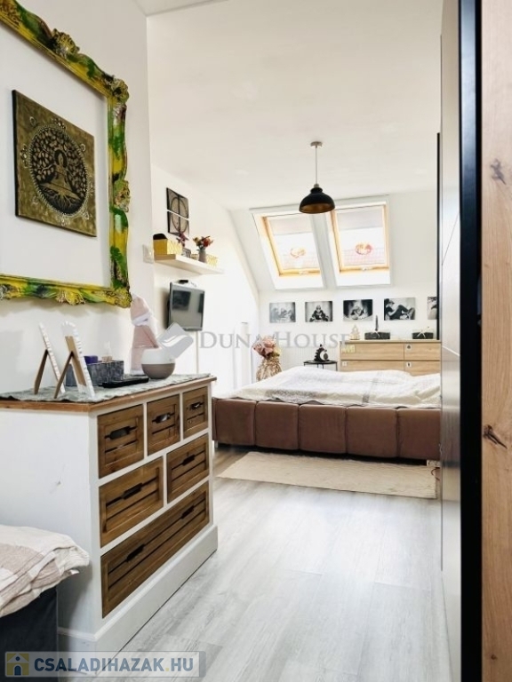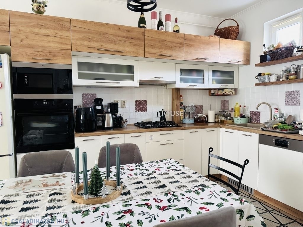 Pécstől mindössze 10 km-re, Bogádon eladó egy igényesen felújított, belső kétszintes sorházi lakás.Az ingatlan amerikai konyhás nappalival, három hálószobával, fürdőszobával és külön WC-vel rendelkezik.Főbb jellemzők:A lakás 4 évvel ezelőtt teljeskörű felújításon esett át, mely kiterjedt:a nyílászárók cseréjére (redőnnyel és szúnyoghálóval felszerelve),új kondenzációs gázkazán beépítésére,teljes víz- és villamoshálózat korszerűsítésére.A tető 20 cm-es szigetelést kapott.A rezsi rendkívül kedvező: a téli fűtés átalány mindössze 7 000 Ft.A lakáshoz kb. 50 m² saját kertkapcsolat tartozik.A parkolás saját kocsibeállón megoldott.A ház mellett található még egy praktikus fa melléképület, amely tárolóként vagy egyéb célra kiválóan használható.A környék csendes, rendezett, nagyon jó lakóközösséggel.A sorházak előtt egy vadiúj játszótér található, amely egy éve épült.Bogád infrastruktúrája kiváló: a közelben iskola, óvoda és kisbolt is rendelkezésre áll