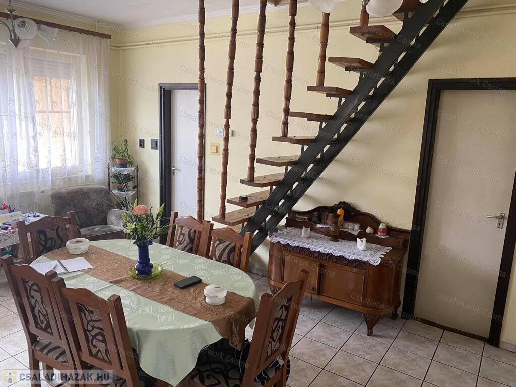Csornai Casanetwork ingatlan eladásra kiínál Bogyoszlón egy családi házat.Az eladó bogyoszlói csaldi ház jellemzői:-1979-ben épült tetőteres tégla ház sok lehetőséggel;-100 nm-es melléképület;-hagyományos nyílászárók műanyag redőnnyel szerelve;-szobák lenn parkettásak, emeleten szőnyegpadlósak, többi helyiség járólapos;-fűtés: vegyes tüzelésű kazán, gázcsonk az udvarban;-falusi CSOK igényelhető.Amennyiben felkeltette érdeklődését az eladó bogyoszlói családi ház hívja a +36-70/423-5353-as telefonszámot, vagy írjon a monika.czinder@casanetwork.hu emailre.