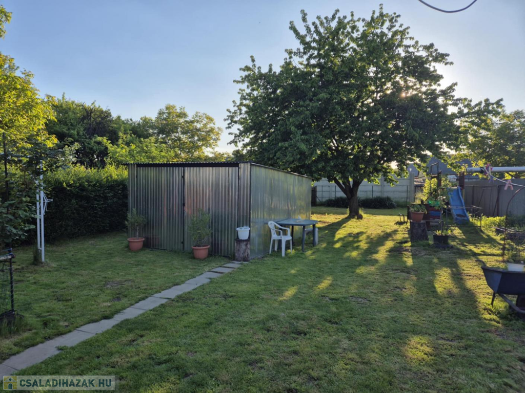 A házhoz egy különálló szerelőaknás garázs valamint egy udvari lemez garázs (vagy tároló) is tartozik, ezenfelül egy külön lekerített tároló/veteményest is kialakítottak.