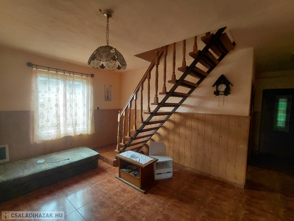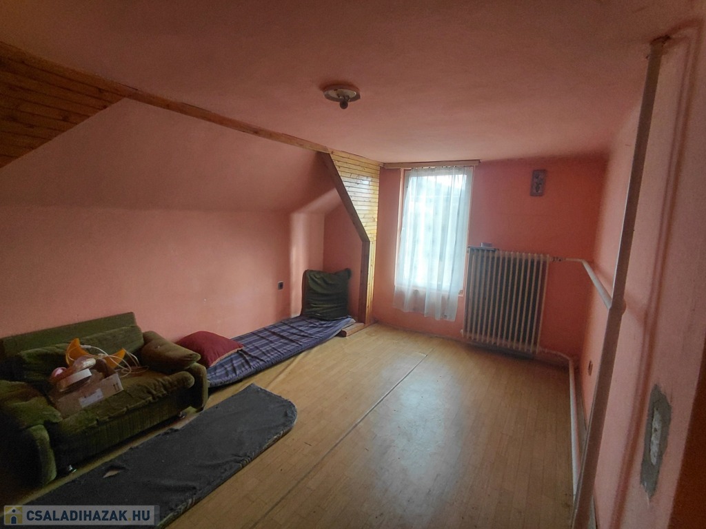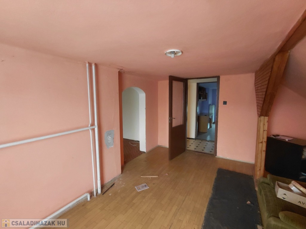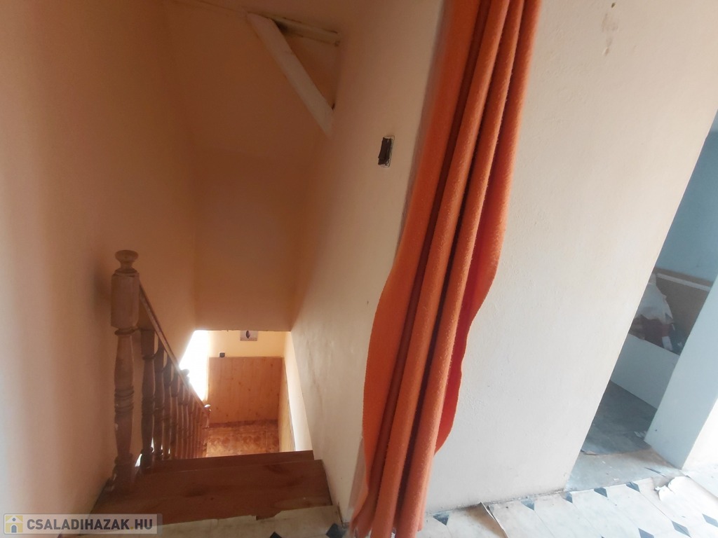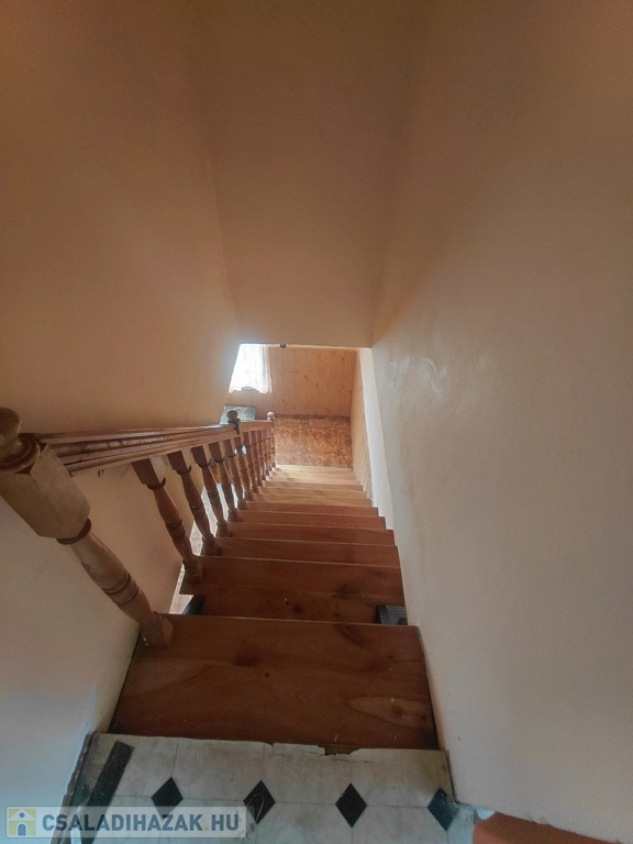 A nappaliból induló lépcső az emeletre vezet, ahol három további szoba, egy tágas folyosó és egy fürdőszobának kialakítható helyiség várja új gazdáját.