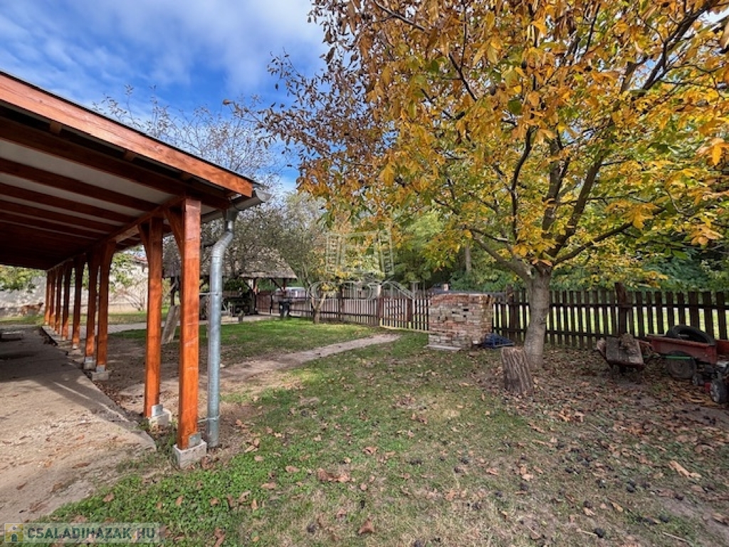 A terület részben térkövezett, fedett autóbeállóval rendelkezik.