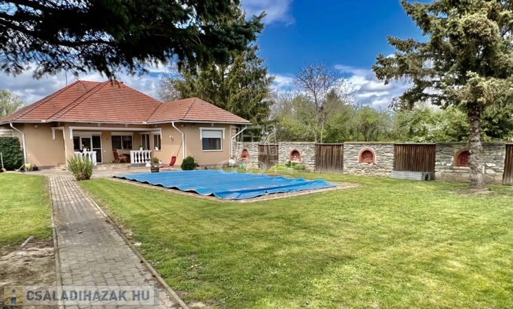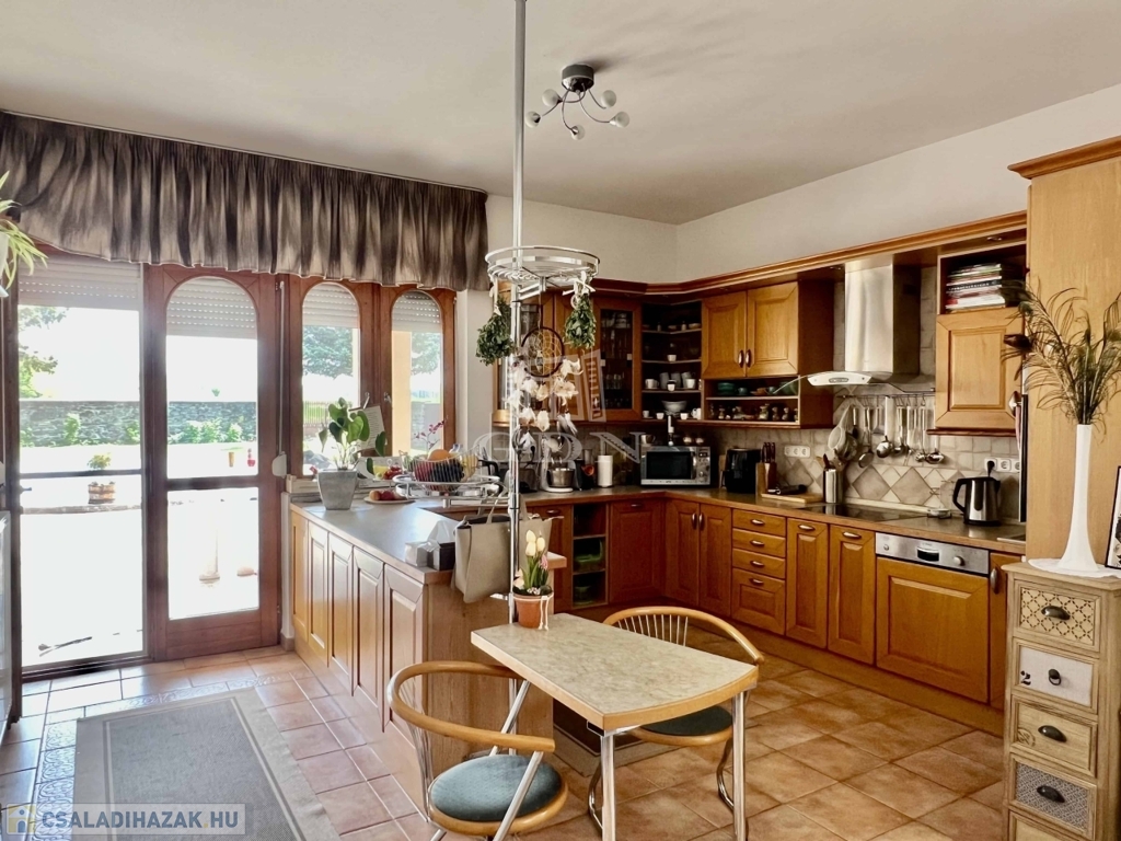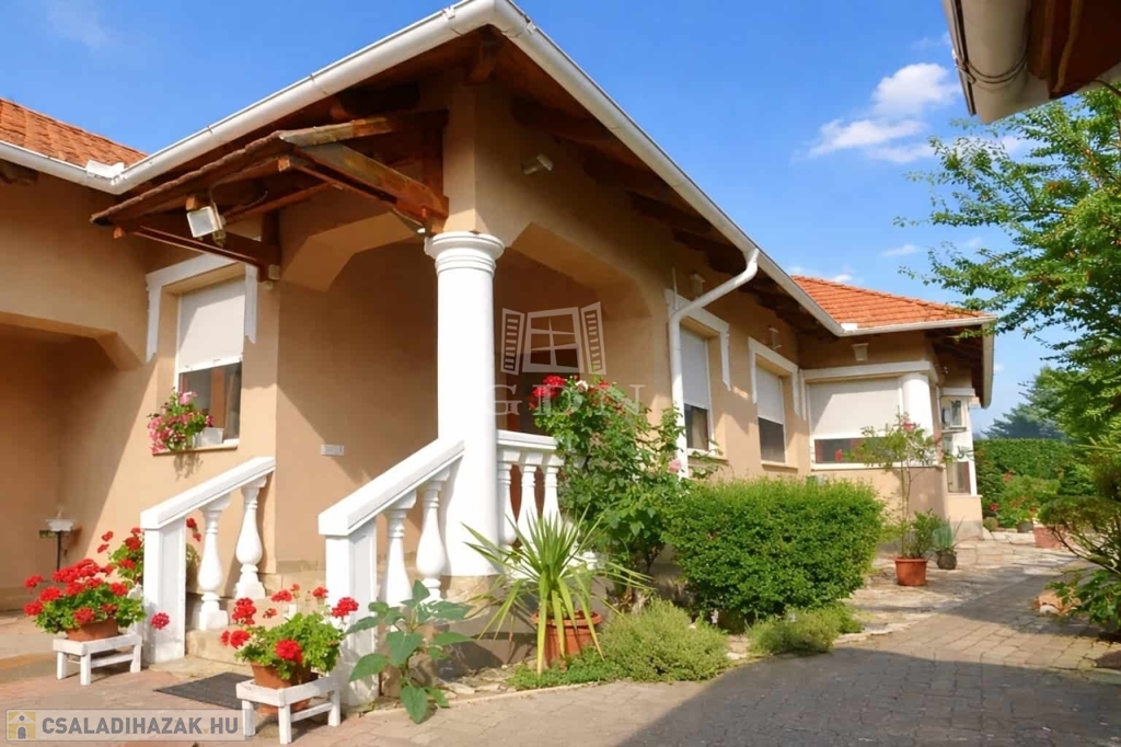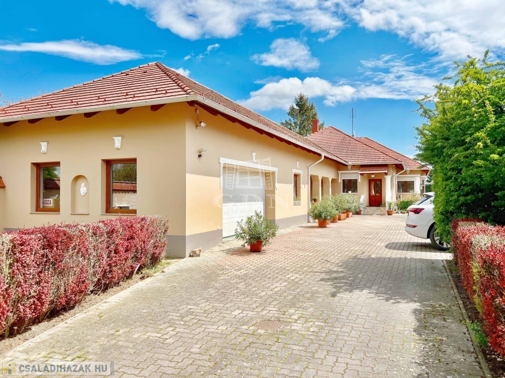 Az ingatlan lakóterülete 290 m2, és kétlakásos kialakításának köszönhetően ideális nagycsaládok, több generáció együttélésére, vagy akár vendégházzal kombinált nyaralóként is kiválóan hasznosítható. A házhoz tartozik egy kerti medence, egy dupla garázs, valamint egy különálló faház, amely kiválóan alkalmas tárolásra vagy raktárként.