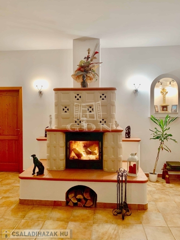 A ház két klímaberendezéssel felszerelt, fűtése modern pelletkazánnal történik, emellett gázcsatlakozás is rendelkezésre áll.