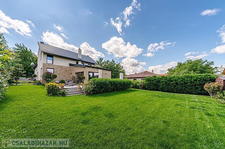 Budakalász kedvelt részén, csupán 15 perces sétára a HÉV megállótól helyezkedik el, így könnyen megközelíthető a város iskolái, óvodái, illetve üzletei egyaránt. A kilátás panorámás, továbbá a nyeles teleknek köszönhetően az intim szférából sincsen hiány. A ház és a kert gyönyörűen karbantartott, többek közt öntözőrendszer is kiépítésre került.