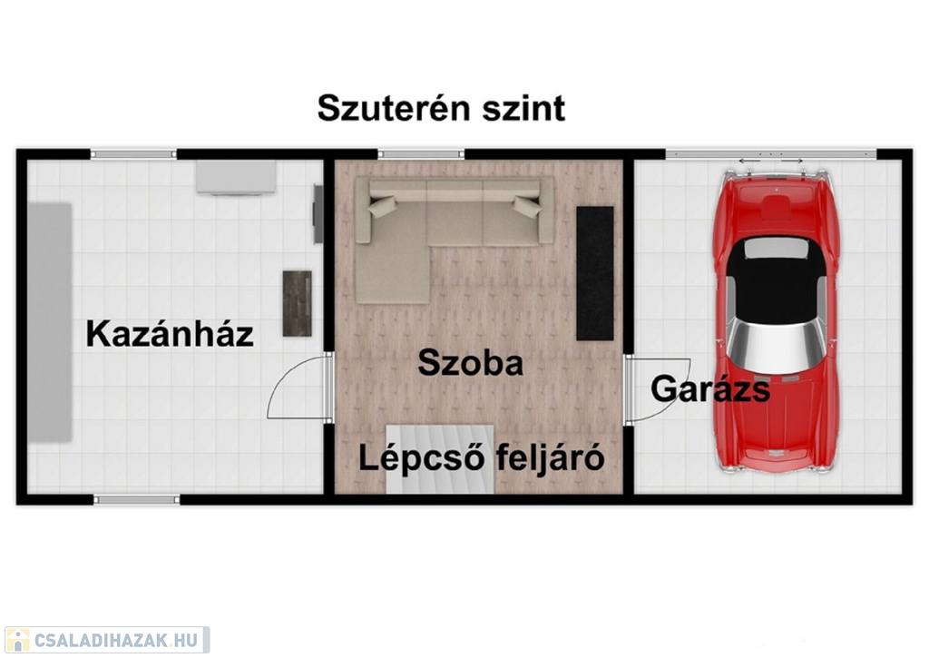 -Szuterén szinten kazánházat, előteret háztartási helyiséggel és a garázst