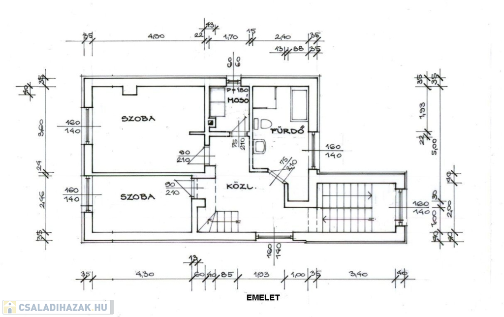 - emelet: 2 hálószoba, fürdőszoba, háztartási helyiség;