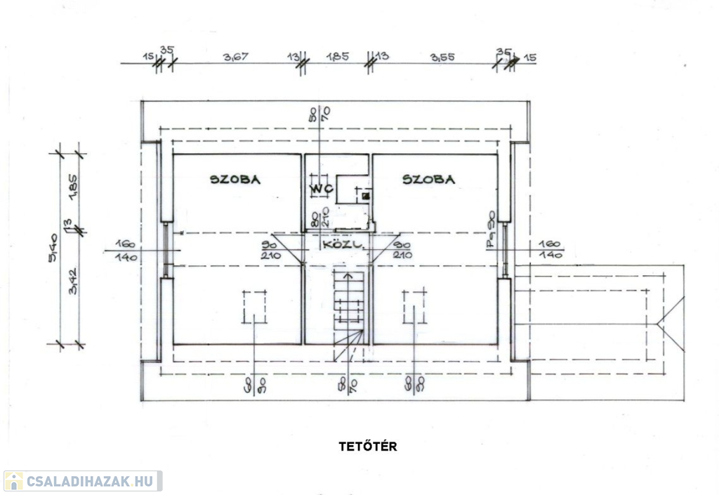 - beépített tetőtér: 2 hálószoba és fürdőszoba.