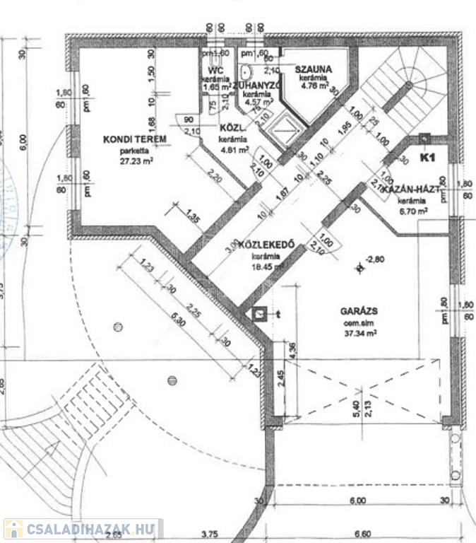 Szuterén és pinceszint: kétállásos fűtött garázs (37 nm), szauna, tágas fitnessz-szoba (27 nm) és tároló