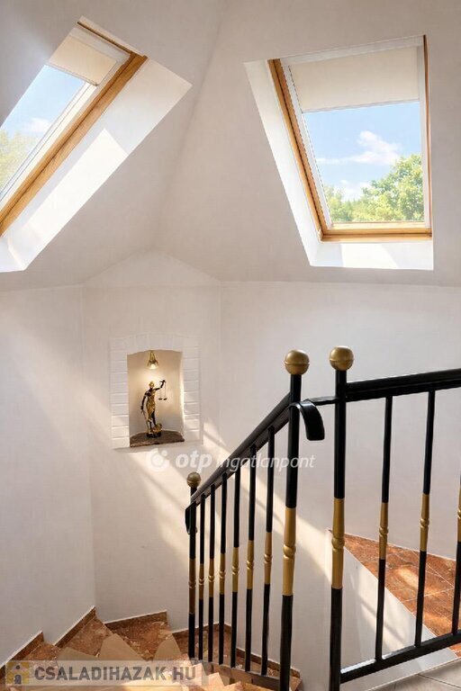 Budakeszi csendes, aszfaltozott utcájában, a természet ölelésében eladó egy kiváló elosztású, háromszintes családi ház.