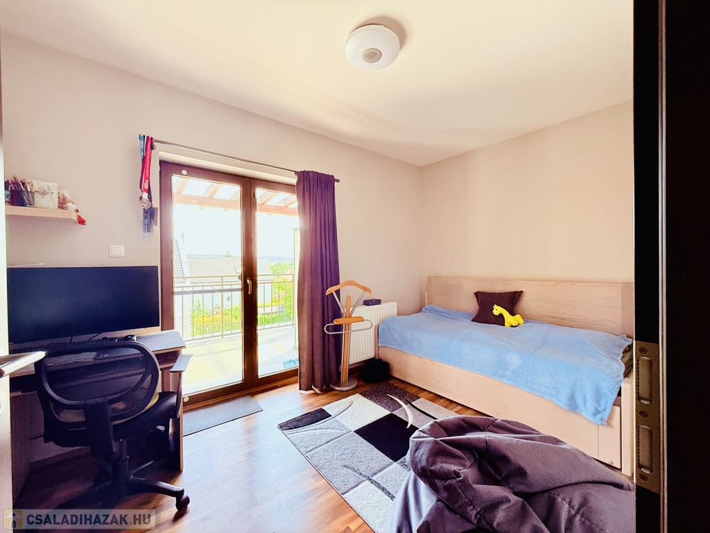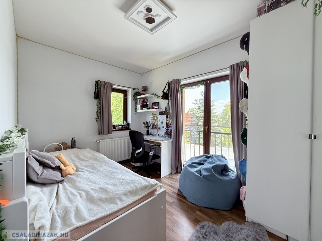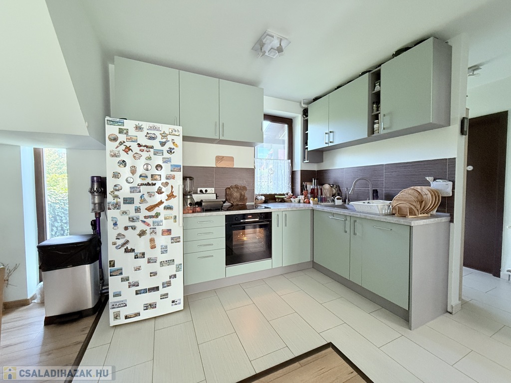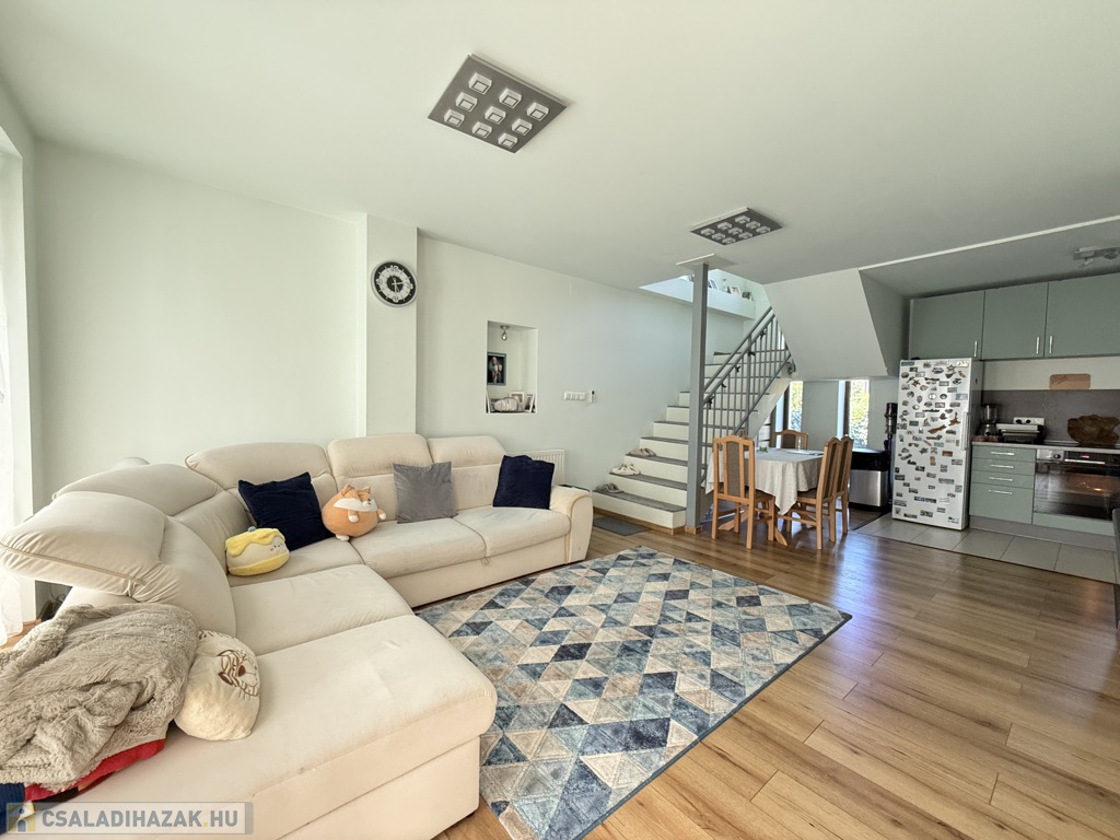 Budaörsön, csendes, zöld környezetben, 136 nm-es, nappali + 4 hálószobás ikerház-fél eladó, amely ideális választás gyermekes családoknak, otthonról dolgozóknak.