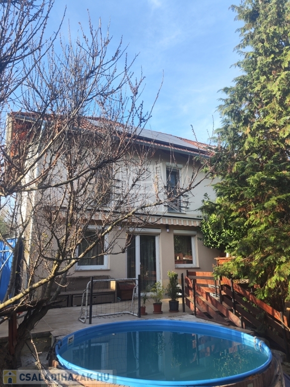 A saját kert könnyen gondozható, még egy medence és trambulin is elfért rajta, valamint a 2 autónak kényelmes beálló.