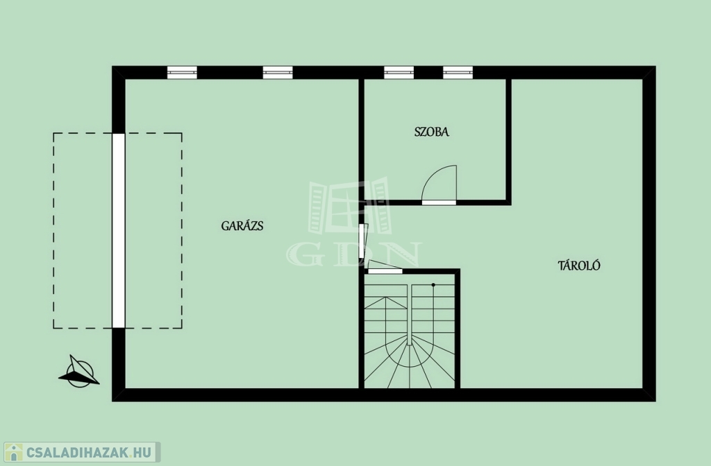 A hátsó részen külön helyrajzi számú épület kialakítása lehetséges.