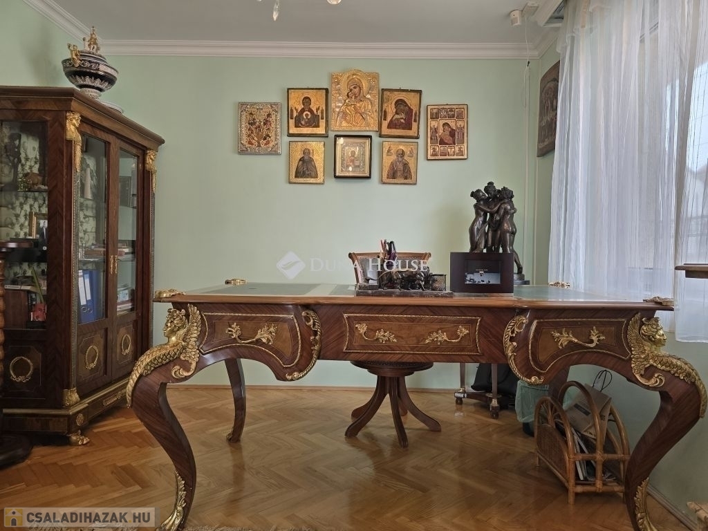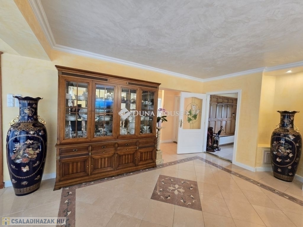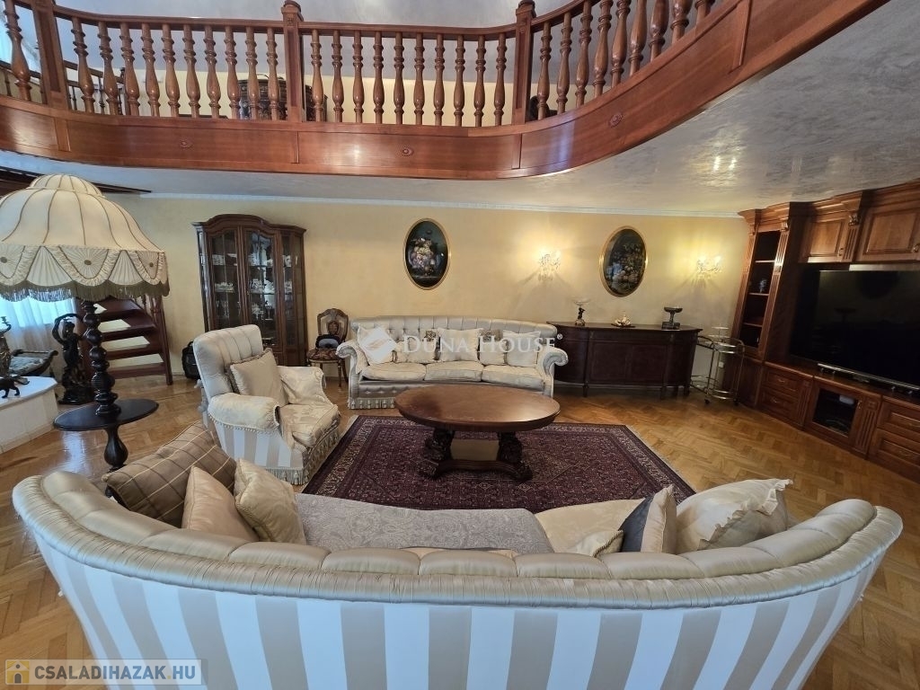 Eladó Budaörs központjában, de mégis csendes helyen egy impozáns méretekkel és terekkel rendelkező belső háromszintes családi ház.