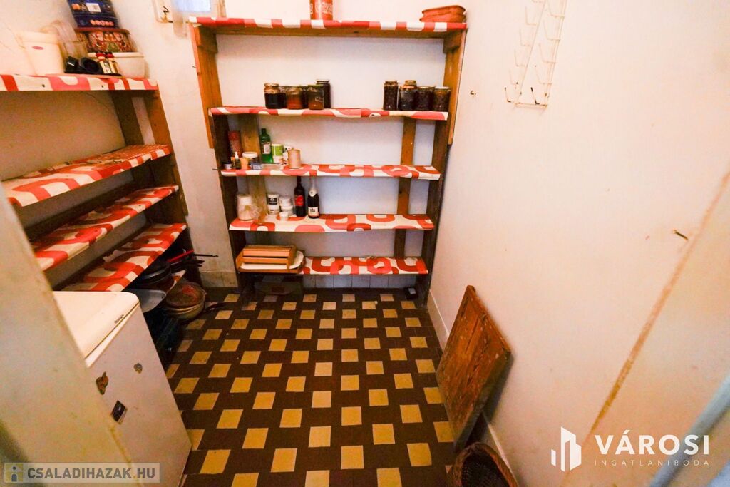 -85nm-es( konyha, fürdőszoba, nappali,lakószoba, előszoba,kamra és egy tároló) 6nm-es terasz, 15nm-es garázs, 4nm-es pince és 20nm-es tároló mellett több kisebb tárolót is találunk