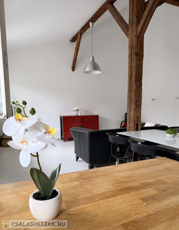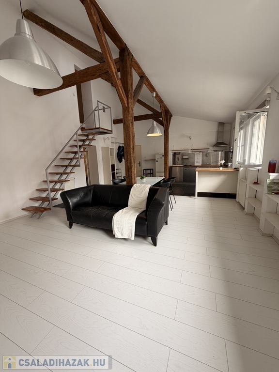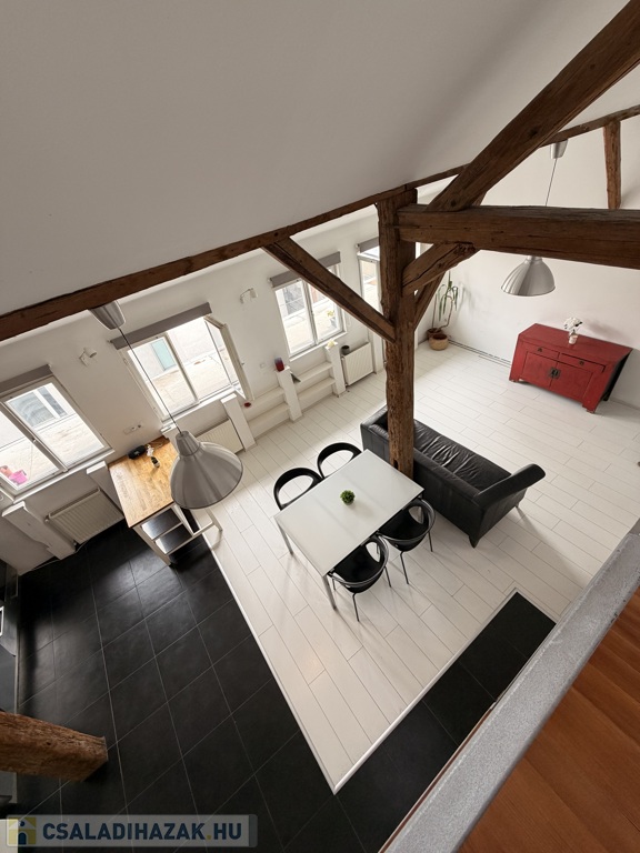 Ez az 56 m²-es, 1+1 félszobás, tetőtéri, belső kétszintes loft lakás igazi ritkaság a piacon. A lakás egy olyan épületben található, amely megőrizte eredeti gerendáit, így a 5,5 méteres belmagasság és a karakteres fa szerkezet egyedi, exkluzív atmoszférát teremt.