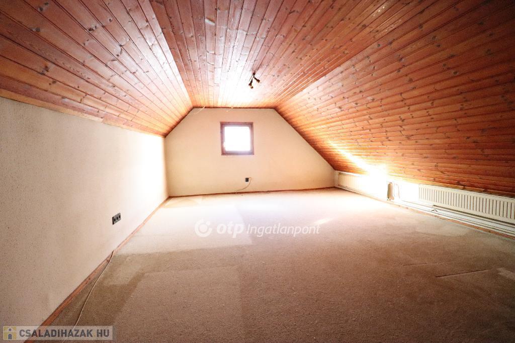 A kétszobás földszinti rész felett a tetőtér beépítésre került, illetve a kert végében található egy különálló kisház is, aminek a területe 29 nm.