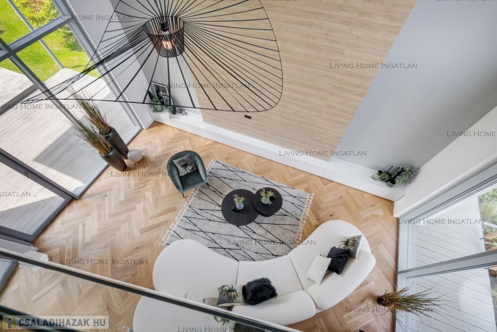 - Living room with gallery with a ceiling height of 6.5 metres.