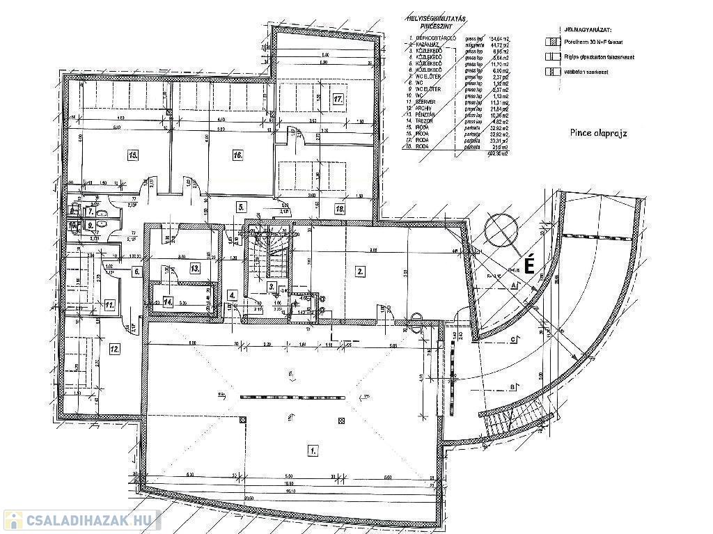 Pince szint: 402,3 m2 (5 autó beállására is alkalmas garázzsal. Több helyiség felülvilágítókkal is ellátott!)
