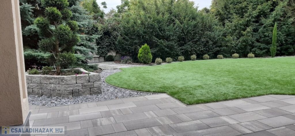 - gondozásmentes, tervezett kert, előnevelt növényzettel,