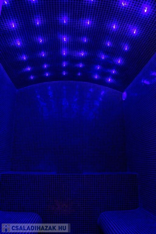 - gőz szauna, az íves plafonján különleges led „ csillag fényes égbolttal), mely színe állítható, teljes belsejét különleges mozaikok díszítik,