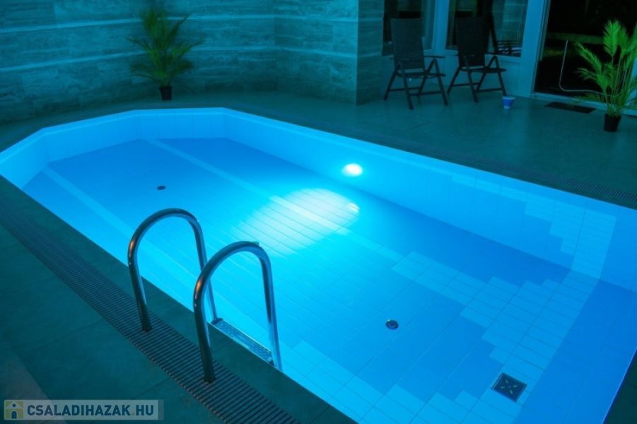 - fűthető medence, Változtatható fényű led világítással, mérete: 6.5 X+3X 1,4 Méter